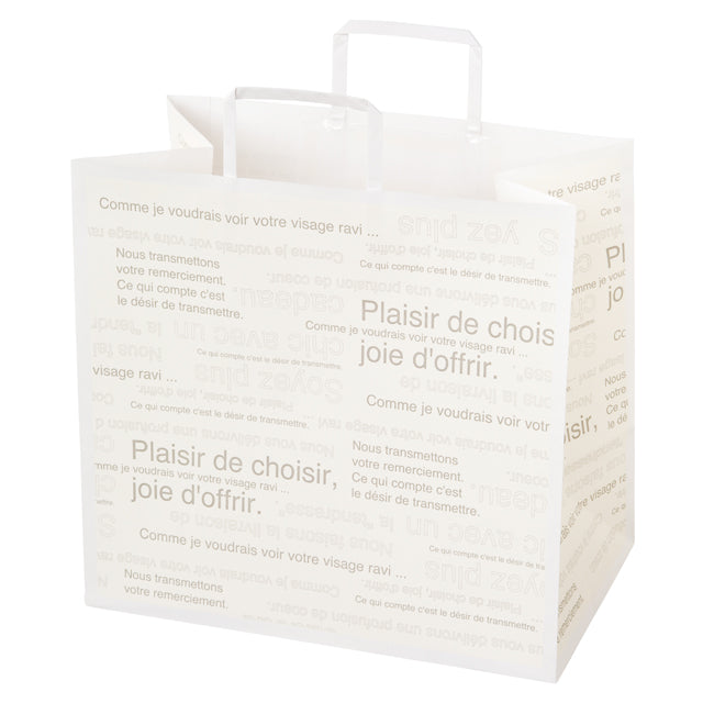 人気のカフェオレシリーズの紙袋。アイボリーとグレーでどんなテイストにも合うナチュラルなデザインのペーパーバッグです。